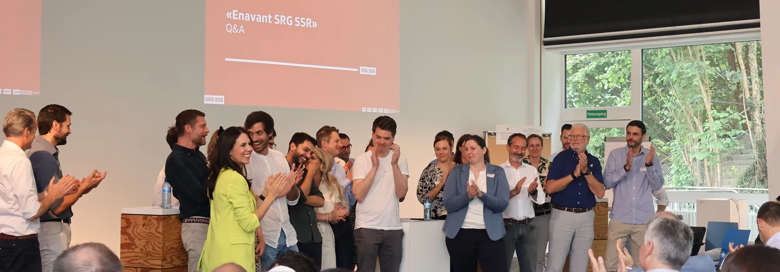 Am Management Meeting im November 2024 haben wir den Transformationsprozess Enavant SRG SSR lanciert. Im Rahmen des Fokus-Meetings von Ende Juni hat die GL SRG über die ersten strategischen Entscheide aus der Phase zwei informiert, die nun weiter konkretisiert werden. Am World Café habt ihr euch mit der neuen Organisation auseinandergesetzt und euch engagiert eingebracht. Viele von euch sind mittlerweile in einer aktiven Rolle involviert. Für euer Engagement danken wir herzlich!